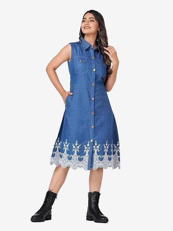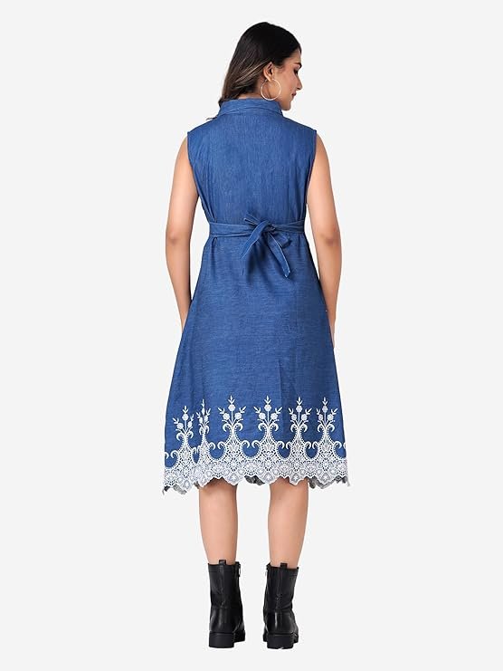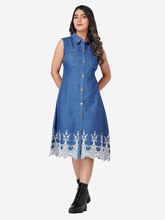 HI-FASHION Collared Embroidered Dress for Women Causal WEAR