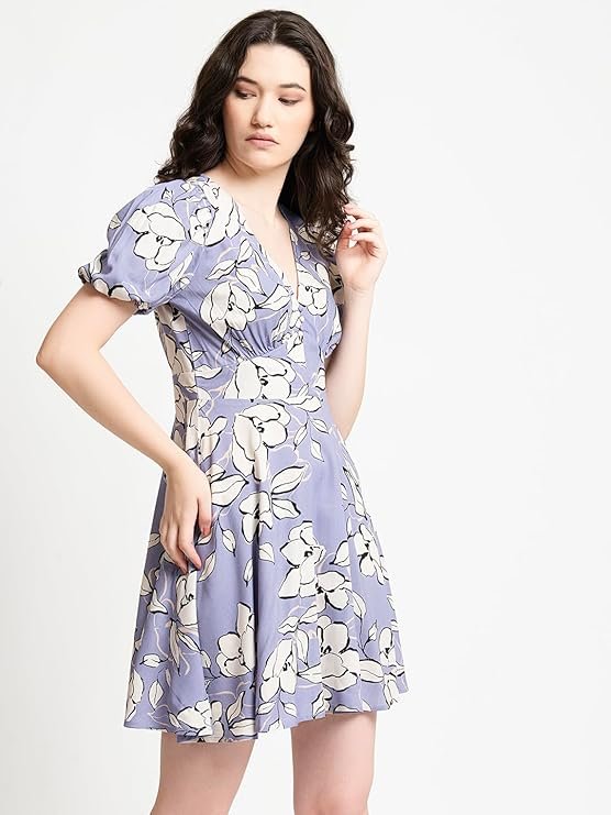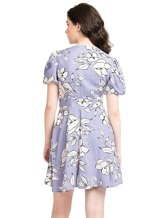 Clothing Women s Lavender Rayon Floral Print Fit and Flare Yoke Dress.