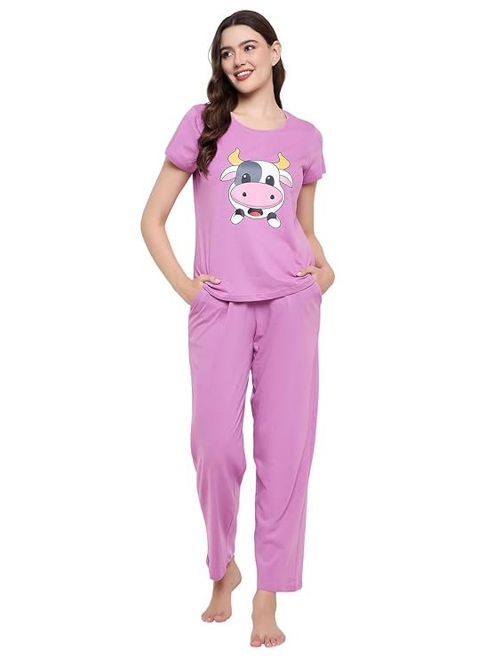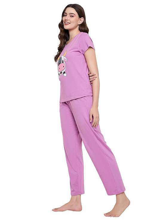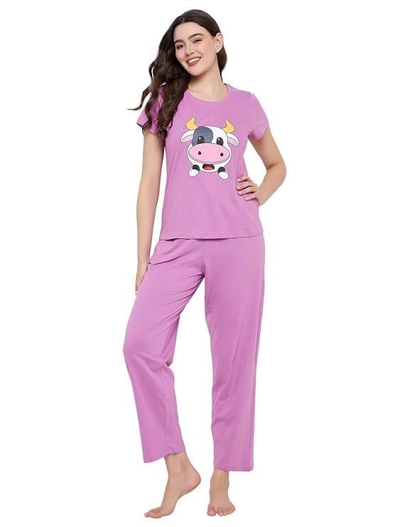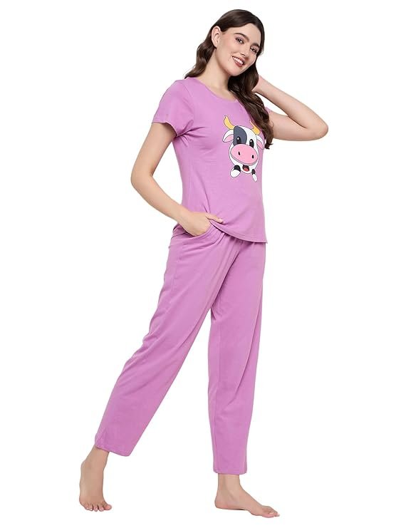 Clovia Women’s Cotton Printed Top & Basic Pajama Set.